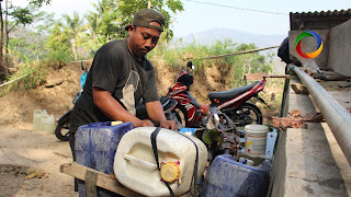 Sejumlah warga memilih membeli air dari para ojek, lantaran jarak tempuh dari rumah ke sumber air sekitar 2 KM, dalam sebulan, satu keluarga harus mengeluarkan uang Rp.100.000 lebih untuk membeli air.