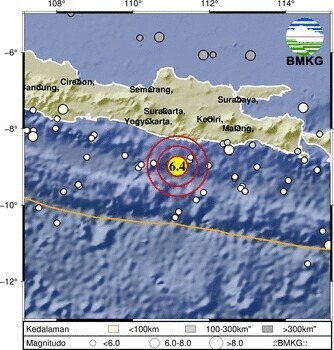 Berdasarkan informasi Badan Meteorologi Klimatologi dan Geofisika (BMKG), gempa terjadi pada pukul 01.06.11 WIB dengan koordinat 8.98 Lintang Selatan dan 111.17 Bujur Timur, atau sekitar 89 kilometer selatan Pacitan, Jawa Timur. Gempa berada pada kedalaman 10 kilometer.