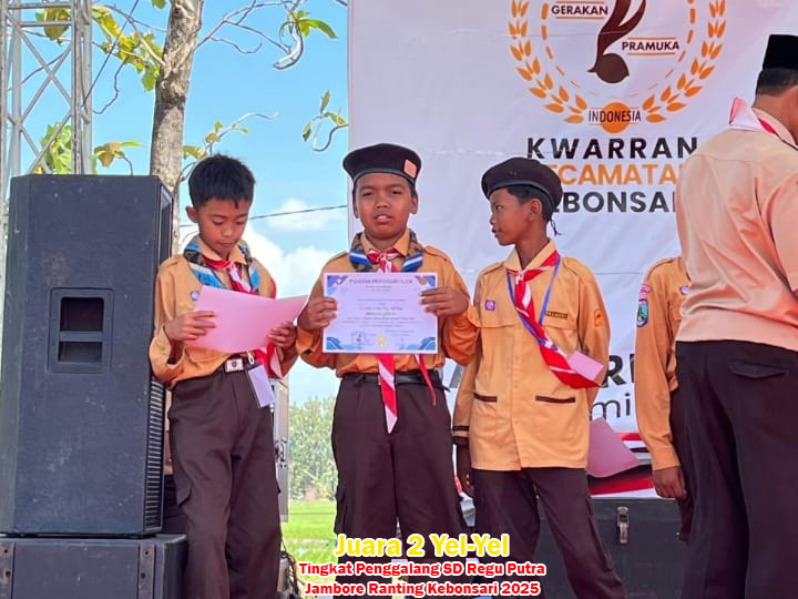 MADIUN – Kegiatan kepramukaan di SDN Tanjungrejo 03, Kecamatan Kebonsari, Kabupaten Madiun layak diacungi jempol. Saat mengikuti even Jambore Ranting (Jamran) 2025, tiga penghargaan diraih sekaligus. Yaitu Juara I Pioneering, Juara II Yel-Yel, dan Juara III Budaya Nusantara.